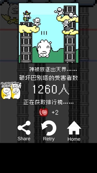 1、摧毁最初的三座塔后,人类会持续建造新的塔,且塔的高度会逐渐增加,只需点击画面就能召唤天雷将其破坏(无论塔出现在什么位置);