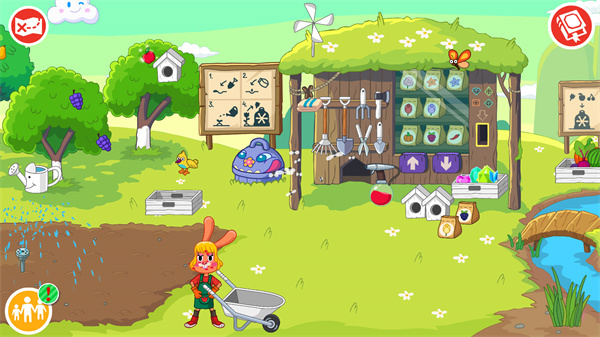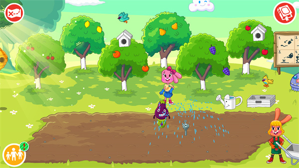 5、每张地图里都藏着不少道具,要记得点击不同的区域,像图中的树木,里面就有一个花盆,给它浇水就能让它开花。