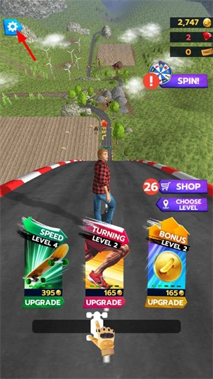 4、通关后,玩家可消耗金币对角色的速度、转向能力以及金币获取能力进行升级。