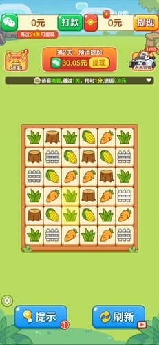2、休闲消除闯关领红包游戏,操作简单,轻松上手,各种关卡等你来解锁,完成挑战,享受游戏的快乐。