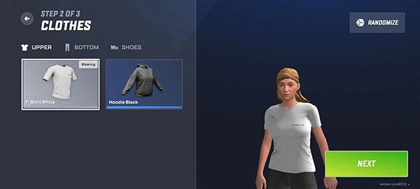 2、为角色挑选一套衣服,这套衣服将作为初始的免费服装,选定后点击NEXT按钮进入下一步操作。