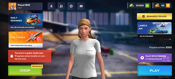 4、接着正式进入游戏界面,左上角显示昵称信息,右上角呈现当前的资金,点击左下角的SHOP按钮即可进入商店。