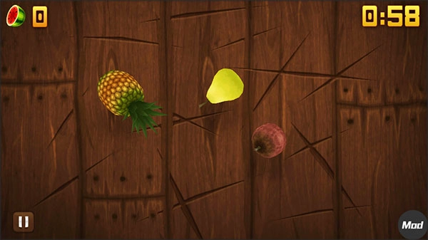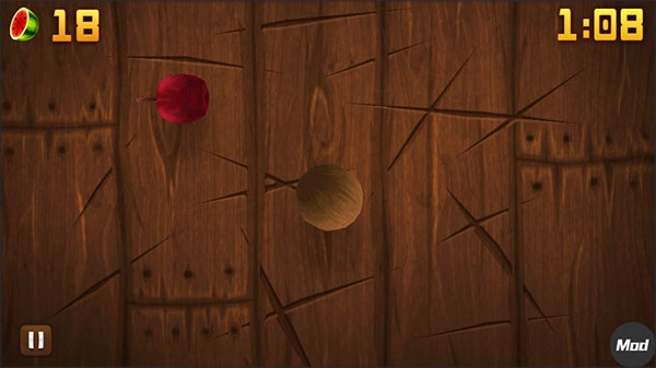 这是最新推出的模式,也是玩法最丰富的一个模式。在这个模式中,水果和炸弹会同时出现,游戏时长为1分钟。它的特别之处在于,和禅模式类似,目标同样是获取更高分数,不过碰到炸弹并不会直接结束游戏,而是会扣除10分。