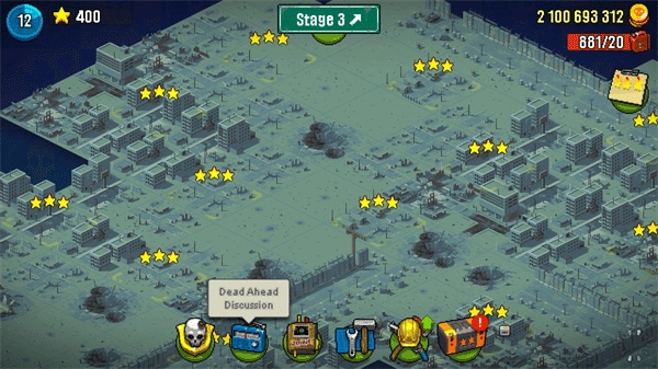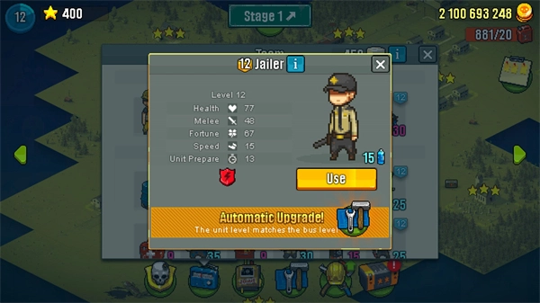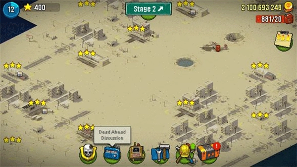 2、来到第二大关,难度明显提升,跑尸的情况也多了起来,想要拿到三星评价有不小的挑战。这时候得把僵尸的移动路线记清楚,还要熟练掌握投弹兵的使用技巧。要是实在卡关过不去,也可以选择卖车——也就是消耗巴士的血量,让卡尔去击杀僵尸来推进。