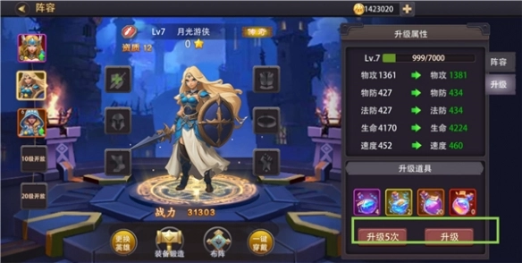 4、玩家还需定时对英雄进行属性升级,提升战斗力。