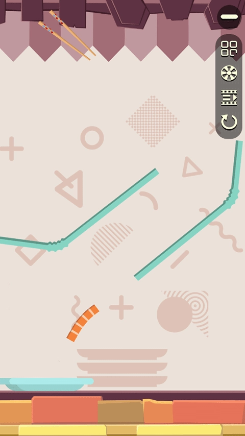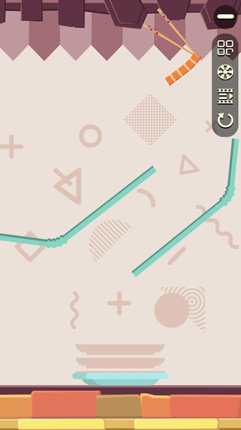 4、游戏操作非常简单,玩家只需提前判断食物的掉落位置,左右移动盘子后,点击屏幕选择合适的位置释放肉条,利用中间各式各样的障碍物抵达预判的位置,让肉条稳稳地落到盘子上就能通关。