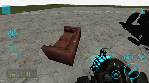 4、默认武器具备移动物体的功能,选中要移动的物体后,长按开火键进行锁定,接着在保持长按的状态下滑动开火按钮即可。