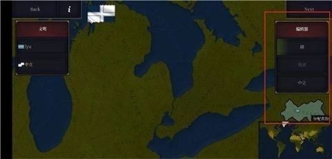4、进入创建页面后,可在右侧选择对应的洲,接着点击地图即可选定势力范围。
