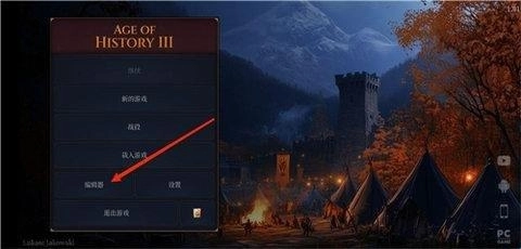 1、打开《文明时代3》(Age of History 3)的主界面,点击界面下方的编辑器按钮