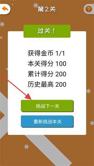 4、当关卡显示已过关后,点击“挑战下一关”按钮,即可继续推进游戏进程。