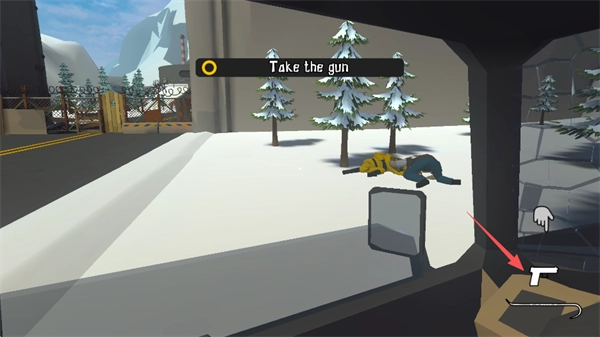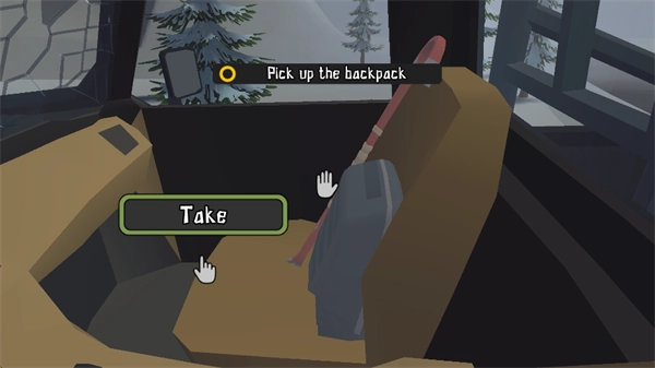 1.进入游戏结束的剧情阶段,撞车发生后,视角会朝右移动,接着点击“Take”按钮,完成背包与撬棍的拾取操作。