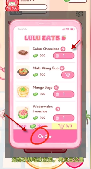 2、进入外卖系统后,可浏览并选择各类美食,挑选好后点击Order按钮完成下单。