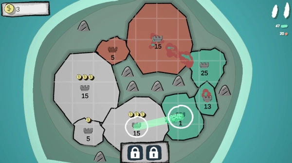 1、站点选择时,优先考虑数量而非质量,并且可以通过跳点的方式进行占领。所以开局阶段让士兵去攻占那些兵力需求较少的5兵力小型城镇,能带来不错的收益;之后还要注意防止一些关键战略地盘被敌人长时间占据。