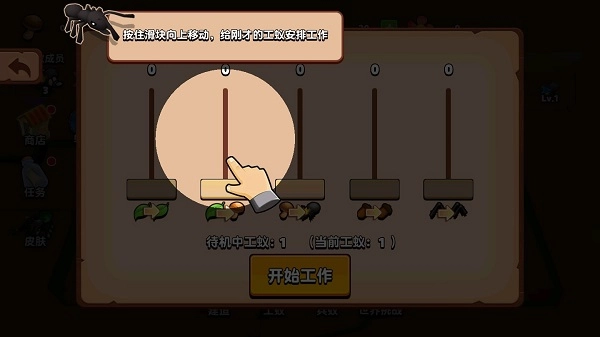 具体操作步骤如下:点击“工蚁”选项,接着按住滑块向上滑动,以此为刚才选中的工蚁分配工作任务。