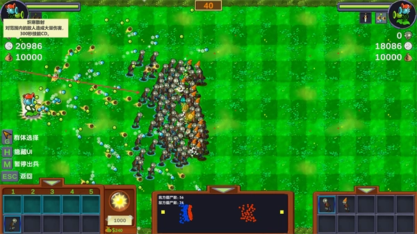 3、补充僵尸兵力,继续推进战线,与敌方剩余部队交战,进一步压缩敌方空间。