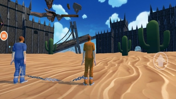 4、操控角色沿着相对平坦的沙面奔跑,利用方向按钮灵活调整跑动方向,注意锁链的长度限制,避免因过度拉扯影响移动效率。