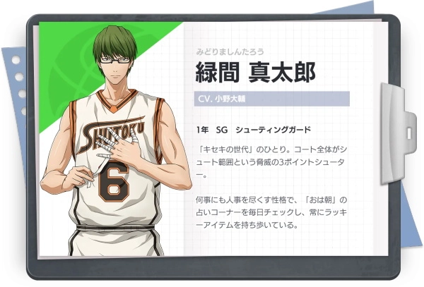 不只诚凛、海常高中,「黑子的篮球」中出现的各所篮球强校成员通通收录!尽情养成喜爱的球员加入竞技吧!