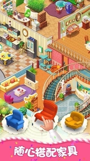 游戏主角奥斯汀拥有一栋气派的别墅,这里正等着我们开启精彩的装修项目。游戏中,我们能通过多样玩法为房子选择不同装饰方案;经典的三消关卡里,我们可以通过交换匹配获取精品道具,用这些装修物品一步步打造出富丽堂皇的“城堡”,完成让奥斯汀满心满意的任务。