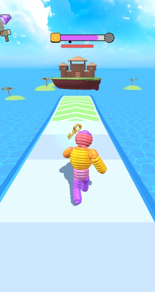 2、跑酷途中躲避各类陷阱与难关,同时主动收集散落的五彩毛线,为提升撞击力积累能量。