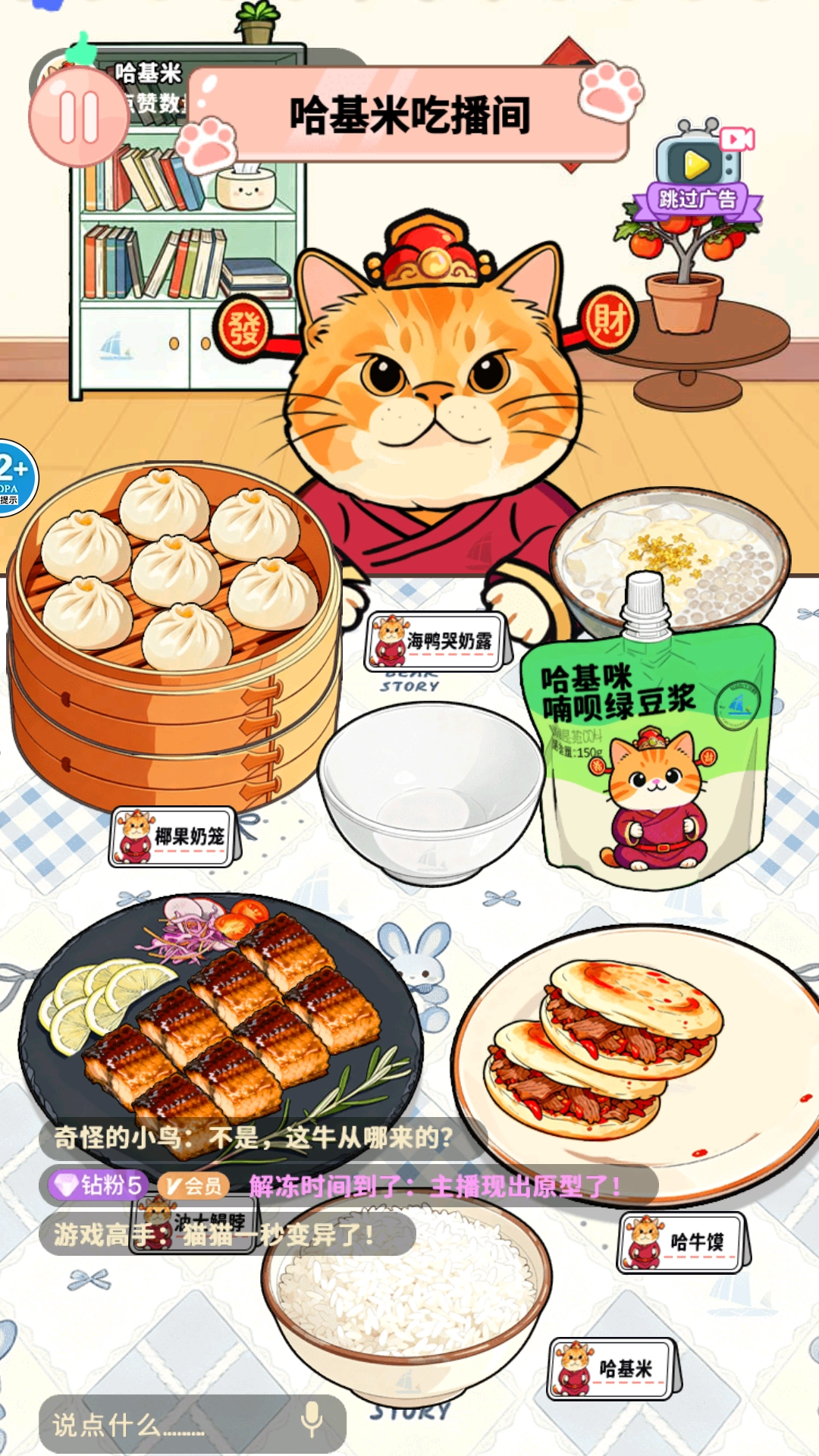 3、随着吃播进度推进,逐步解锁稀有食物品类,稀有食物不仅触发特殊反应,还能吸引更多观众关注,提升直播热度。