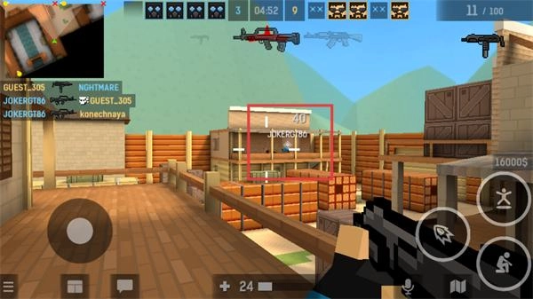 2、战斗中瞄准敌方目标(如带有“40”标识的对手)开火,同时利用场景中的掩体隐蔽自身,避免被攻击。
