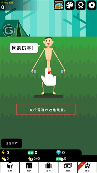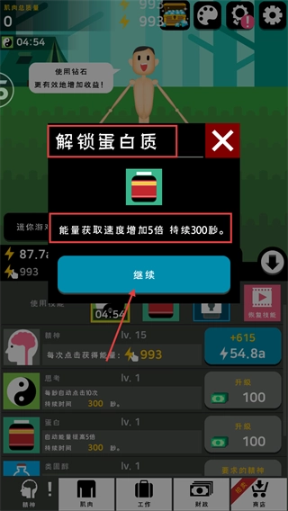 3、点击操作与能量收益直接挂钩,搭配技能使用,高效推进肌肉养成进程。