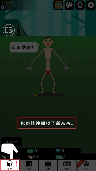 3、魔性点击操作加速肌肉增长,搭配力量训练,趣味体验让人忍不住沉浸其中。
