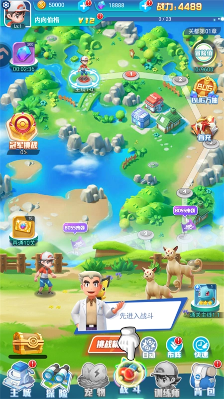 3、进阶训练师可提升挂机收益,小精灵支持自动战斗,实现精灵世界全天候成长。丰富多样的冒险体系,等待召集精灵开启最强训练师的冒险之旅。
