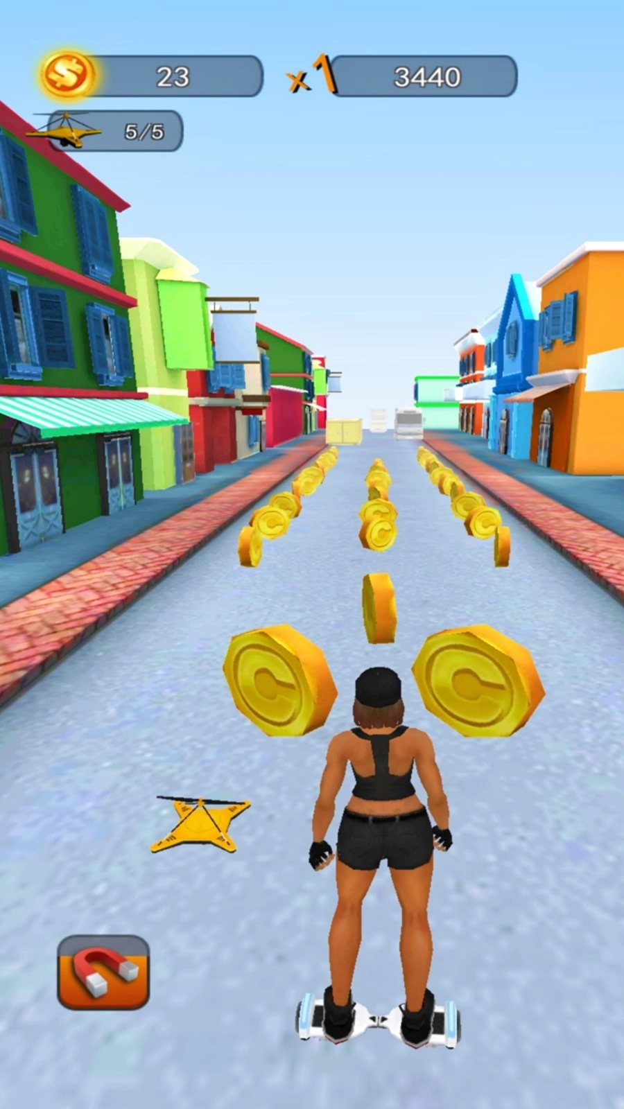 2、在跑酷过程中收集金币与积分,积累足够资源后可解锁新的平衡车型号与角色装扮,优化跑酷体验。