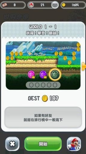 展示马里奥的酷炫动作,和你的朋友一较高下,还能挑战全球各地的玩家。