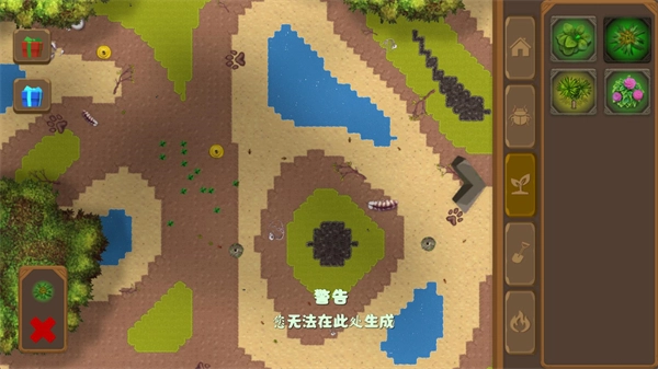3、点击小树苗按钮能够放置各式各样的植物,每种植物都具备不一样的效果。