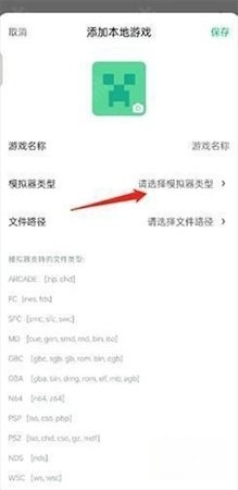3、输入游戏名称,选择模拟器类型,并选定文件路径,即可完成导入。