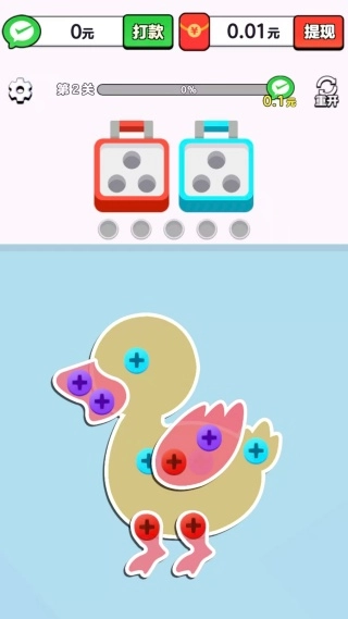 3、当所有螺丝都被正确放置后,就能出现大量的红包奖励哦。