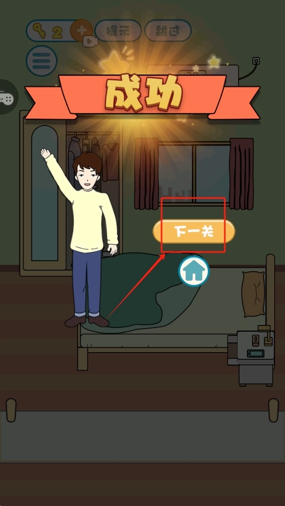 4.继续挑战:成功叫醒后,点击“下一关”进入后续更具创意的关卡。