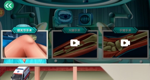 游戏设有多个关卡,涵盖膝关节手术、大腿手术、手臂手术等不同类型的手术场景。