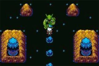 2、来到新大陆往前走进入个小镇,左边是赤爷,右边的是绿爷,没什么用,就是刷级的继续向前走。注,NPC是帮助查看个体和努力的。