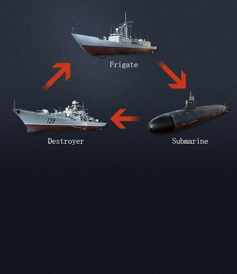 游戏里有驱逐舰、护卫舰和潜艇这三种基础舰艇类型,要是能合理运用舰船之间的相互克制关系——驱逐舰克制护卫舰、护卫舰克制潜艇、潜艇克制驱逐舰——就能在战斗中造成更高的伤害。