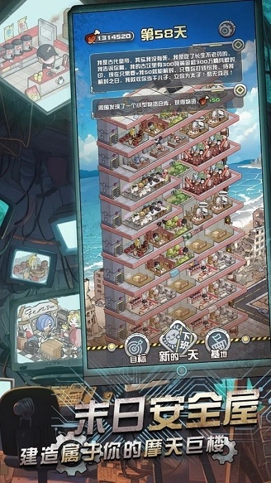 这是一款以末日废土为背景的模拟经营游戏,核心玩法是扮演房东,通过出租房屋和管理资源来实现财富积累。游戏融合了多种元素,玩家需要在破败的世界中改造房屋以吸引租客、提升租金,同时还要运用策略抵御来自环境的威胁,比如应对周期性的危险事件。玩家可以通过战斗获取资源,背包系统允许玩家便捷地管理和使用各类道具,但需要根据当前的经营状况和面临的挑战,明智地选择使用时机,以最大化收益和生存效率。