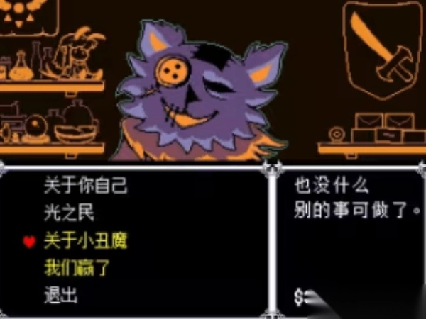 Spamton本体是kris独自面对的那个推销员。首先见到斯潘顿本体后选择非暴力路线,通过交易的方式取胜(和饶恕的机制类似)