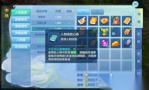 有个叫“人物经验心得”的道具很容易被新手玩家忽略,它能在梦想币市场用少量梦想币买到。要是你的等级还没跟上服务器等级,或者昨天获取的经验不多,那第二天就能用这个经验心得来领经验啦。建议大家每天上线都留意一下能不能使用经验心得,这绝对是升级又快又省心的好办法。