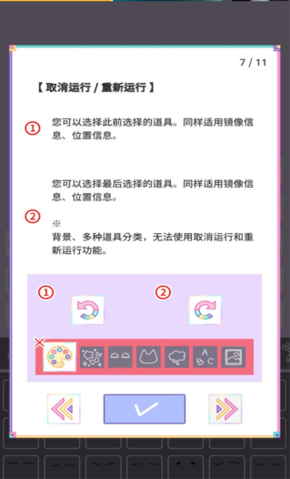取消运行/重新运行:能够选择之前的道具,不过背景以及多种道具分类不在支持范围内。