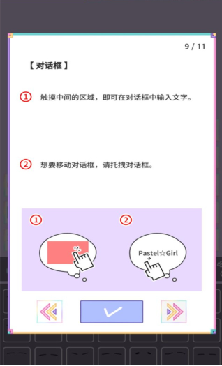 对话框:触摸中间区域输入文字,拖拽对话框以移动。