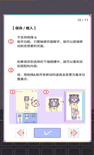 保存/载入:触摸页面数字移动页面,保存的内容在下端插槽查看,拖拽道具会回到基本位置。