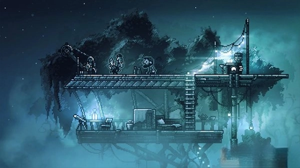 2. 氛围营造与像素艺术表现亮眼,画面用阴郁色调结合精致像素搭建出压抑的世界,场景里偶尔出现的光源和细节让故事感染力更强,像阴森的城堡走廊和荒废房屋内部就形成了鲜明对比。