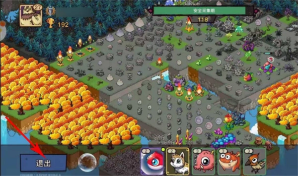当你进入其他玩家的家园后,找到古兽采集所需的物品进行采集,采集完成后立即点击退出按钮,这样就完成了“偷家”操作。