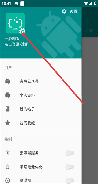 2、在侧边栏点击一触即发图标旁的设置按钮,若未登录可点击进入登录或注册流程完善账号信息,以便保存浏览内容。