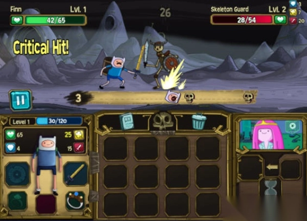 阿宝勇闯骷髅营是一款改编自知名美国电视动画《探险活宝》的冒险RPG游戏。在游戏里,你将化身主角阿宝,为营救被骷髅兵掳走的好友老皮,在公主的指引下改造武器、增强战斗力,与骷髅士兵激烈交锋,将老皮从危难中解救出来。