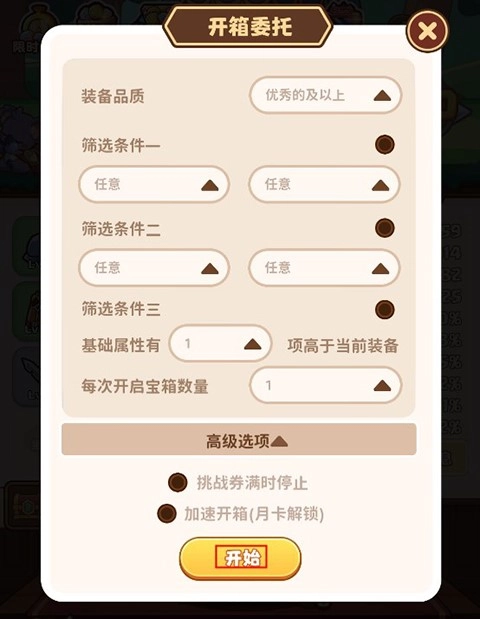 当玩家的等级提升至指定阶段后,系统将解锁一项便捷的开箱辅助功能。通过该功能,用户可根据自身需求设定开箱的具体规则与条件,无需手动操作即可自动完成开箱流程,让游戏体验更加轻松高效。