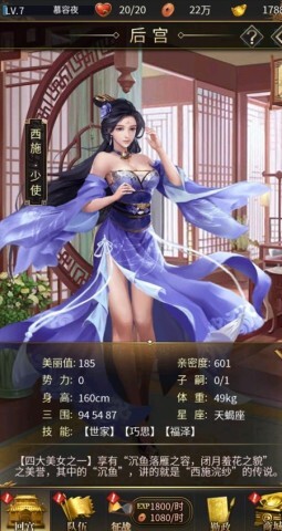 3、游戏采用精美的写实画风再现春秋战国的辉煌,玩家可以欣赏到西施的绝代风华。