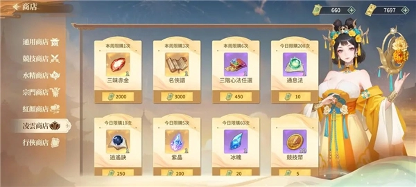 关于凌云商店的选择确实需要权衡一下,毕竟这里的货币收益不高,但三昧赤金和名侠谱这两样物资又都很稀缺。具体怎么选还是得看个人需求,但建议优先考虑这两种物品,其他东西暂时可以不用购买。